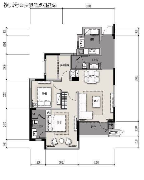 B户型 82方 2室2厅1卫