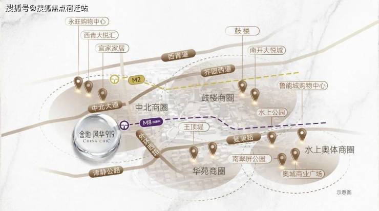 金地・风华 919 所在的中北板块,有着兼具城市繁华与低密稀缺的双重价值。它作为距离南开核心区的环城首个醇熟发展区域,历经 20 年的精心雕琢,已然成为配套成熟的宜居之地。这里有永旺、宜家、大悦汇等商业巨头汇聚,构建起一站式的繁华生活圈,购物、休闲、娱乐统统在家门口搞定。双地铁的加持,更为日常出行注入便捷与高效,轻松畅达城市各处。