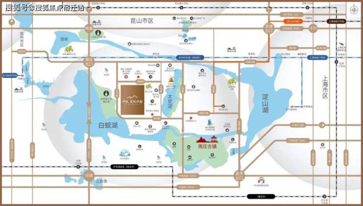 目紧邻常嘉高速周庄出入口,亦可迅速接驳同周公路;规划中的轻轨S3号线则东连上海17号线漕盈路站,西接苏州4号线同里站;