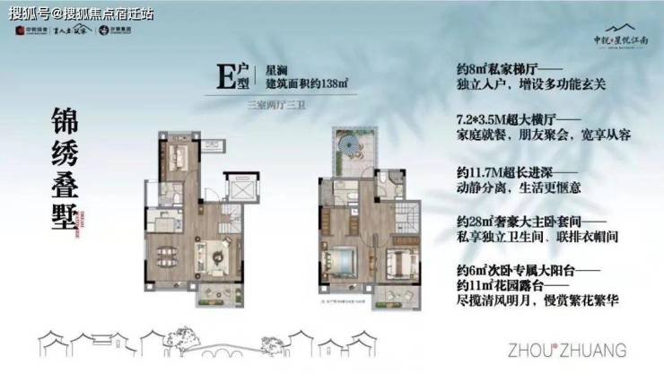 承袭中式意韵,融入现代精工,以1.5低容积率,打造建筑面积约98-118m²的墅质洋房、建筑面积约135-145m²的锦绣叠墅等多元产品,全系精装产品,敬呈江南理想人居。