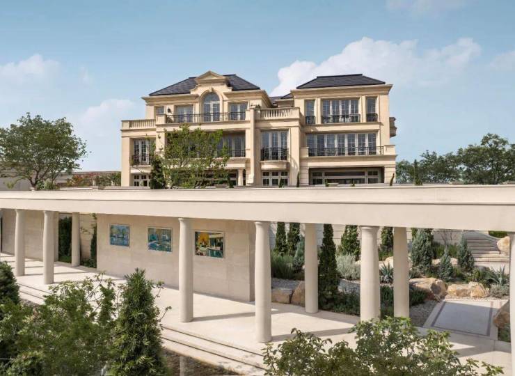绿城·溪径恒庐的29栋法式合院,几乎没有一栋的外立面是重复的。你仔细看,山花有尖顶的,有平顶的,有拱顶的;有的是用竖向线条贯穿两层,有的是用弧形阳台装点优雅的拱门。不变的,是色泽迷人的石材,是无尽的对称,是浮现在屋顶上的群山,它们就像《希腊古瓮颂》中说的那样,「比诗还温柔」:群山的史家,你竟能铺叙/一个花样的故事,比诗还温柔〔Sylvan historian, who canst thus express/A flowery tale more sweetly than our rhyme〕。
