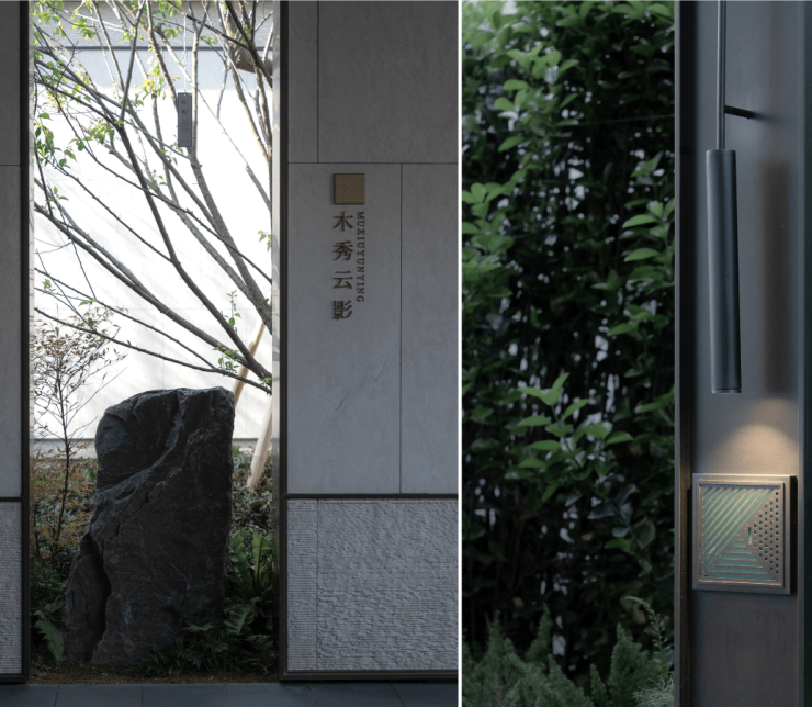 基于场地周界三面均为老旧住宅区,为了延续城市构想,在老旧城市界面中提升产品形象,景观希望用设计保留古典园林中的东方韵味,取法留园师法艺圃,再现东方门庭风度,力求打造一处藏于城区中可见山水、可见四时的东方藏品大宅。
