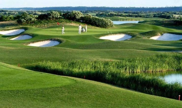 占地1200亩的旗忠高尔夫球场。球场占地面积1050亩,是一所标准18洞锦标赛级球场。会所、练习场及附属设施的总建筑面积8000多平方米,是上海地区高端的会员旗忠高尔夫球场实景图