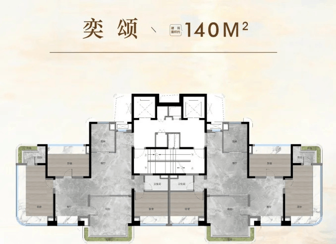 户型设计上,约140平方米的户型做到了四房三卫双套房,这种设计在海珠区较为罕见,天河区类似产品有观樾、天河源筑等。