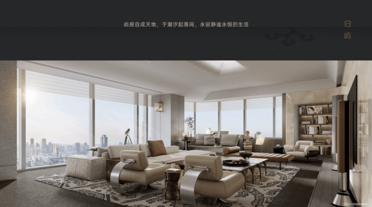 「 产品定位」:建面约420㎡-730㎡天际大平层,纯粹高定改善住区。