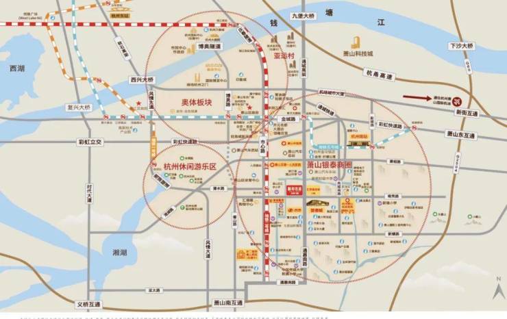 湘湖旅游度假区、杭州乐园等知名旅游区在侧。