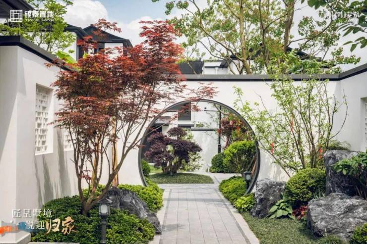 当你独坐露台或室内,玻璃幕墙、栏杆,丝毫不会影响你的景观视野;独门独户的院子里,有煮茶空间、 花道空间等,饮茶、插花、下棋或会客,可满足文人雅士般的归隐生活;当你徜徉在巷道里,两道深墙之间, 一条树木掩映下的林荫夹道上,偶遇一块精致的石头、一棵精致的树,转头又能看见一扇樱花点缀的花窗画景......