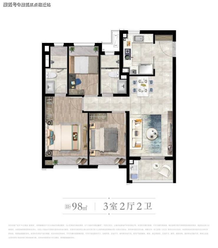 [ A户型 ] 建筑面积约98㎡ | 3房2厅2卫