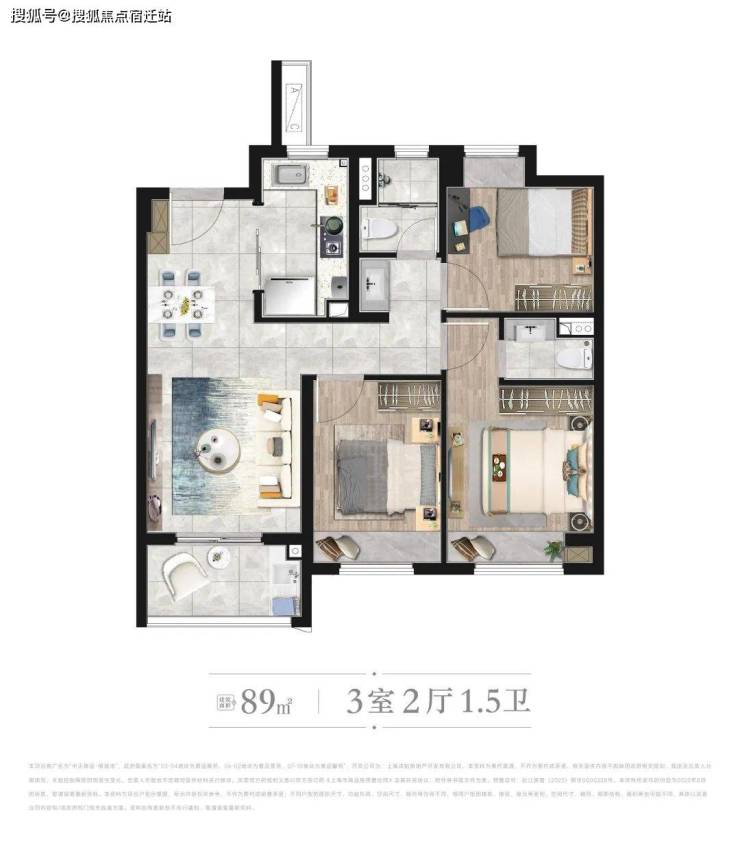 [ B户型 ] 建筑面积约89㎡ | 3房2厅1.5卫