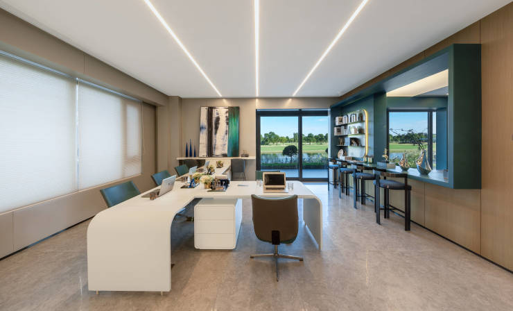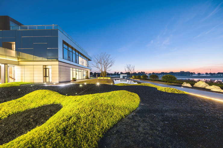 美兰天地私享城市风光,打造一方水岸秘境,更运用大面积玻璃墙体,打造无切割方正空间,3-5层玻璃建筑群落,以约0.4容积率散落湖畔,270°寰幕空间设计,置身其中,宛如驾御于果岭之上,是时代层峯人物理想的私人会馆。