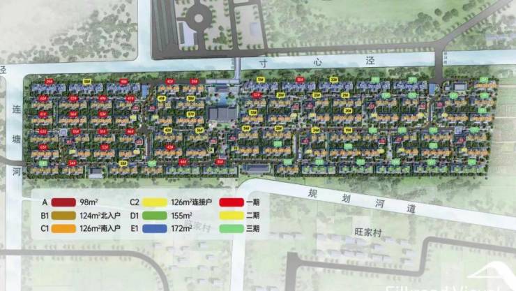 整个项目占地约9.4万平方米,规划了282户独栋合院,每户均拥有地上2层和地下1层的设计。项目北侧紧邻“寸心泾”内部河流和上海协和高尔夫俱乐部球场,西侧则与连塘河相连,让您在享受城市便利的同时,也能亲近自然、享受宁静。