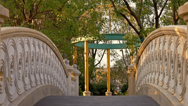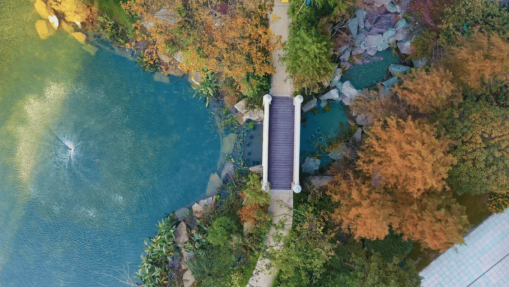 60%的超高绿化率,整个小区灵感来自于纽约中央公园,同时融入了江南园林淡雅内敛的风格精华,在顺应原本地貌的基础上,打造一心九轴的高品质景观。