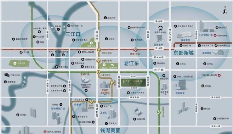 汀澜瑧悦府的地理位置优越,直线距离约500米即可到达地铁3号线仇毕站,约650米处有地铁4号线潘火站,周围有南环高架等立体路网,交通便利。同时,这里也是宁波繁盛源点老江东的核心区域之一,距离鄞州腹地约1公里,东部新城CBD约2.5公里,生活便利。