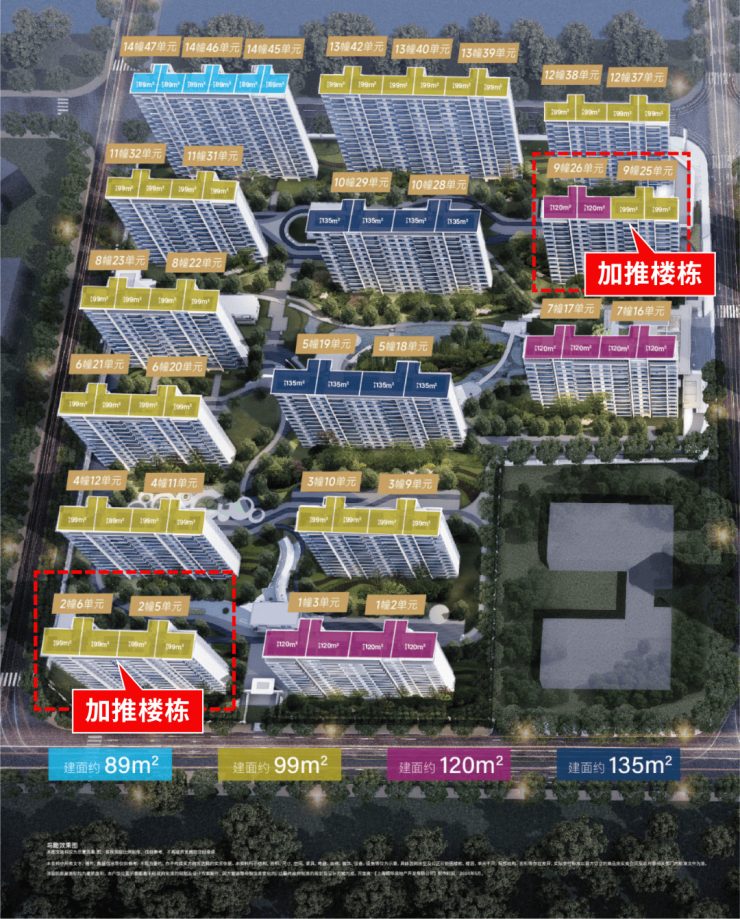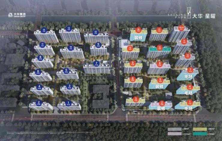 主力户型建面约99-120㎡3-4房,毛坯&精装2种产品任挑选,均价44595元/㎡。
