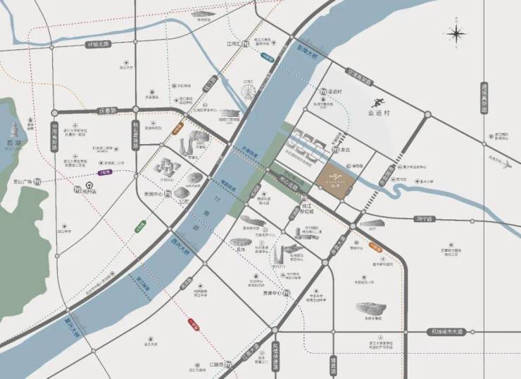 双轴联动:奔竞大道、机场高速串联滨江核心与萧山国际机场,20分钟畅达世界窗口。