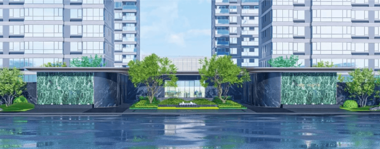 奢阔艺术门庭,打造长约104m、高约6m城市展示界面。景墙精选奢质石材,配以普拉达绿、卡地亚灰等高级色调点缀,匠心独具。