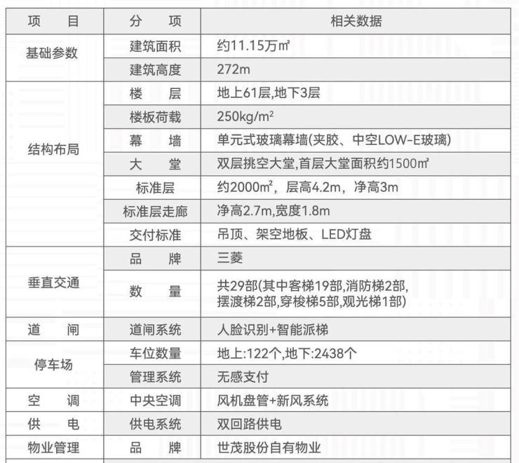【总楼高度】约272米;