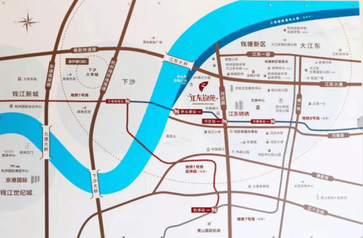 【江东锦苑】位踞于河庄街道核心,距离8号线河庄站仅约400米,步行约5分钟。地铁往东三站可达宝龙广场、龙湖天街,往西两站可达下沙大学城。项目北面不到百米即是大江东的城市主轴江东大道,连接江东大桥,开个车无需多时即可抵达下沙,很是便利。