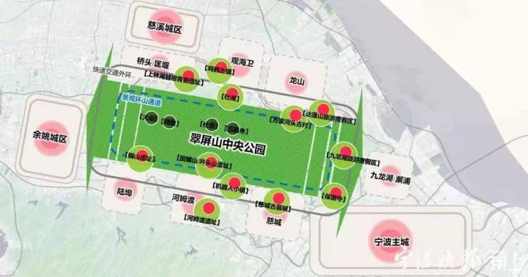 在翠屏山中央公园这片体量约421平方公里的土地上,汇聚了名镇、4A景区等重磅级文旅配套,将打造为以一个中央公园为核心、史前遗址保护片区等多个区域共同发展的文旅融合区。