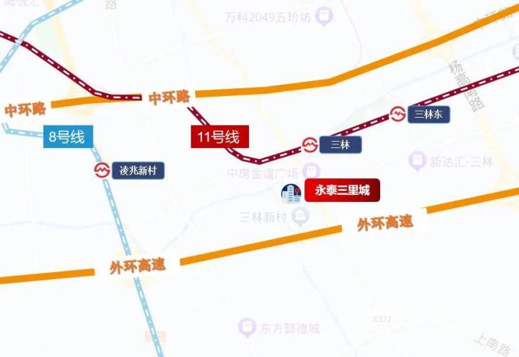 轨交方面:项目距地铁11号线三林站直线距离约500米,临近中环路和外环高速,交通十分之高,几乎可以畅达整个上海市各个交通节点。