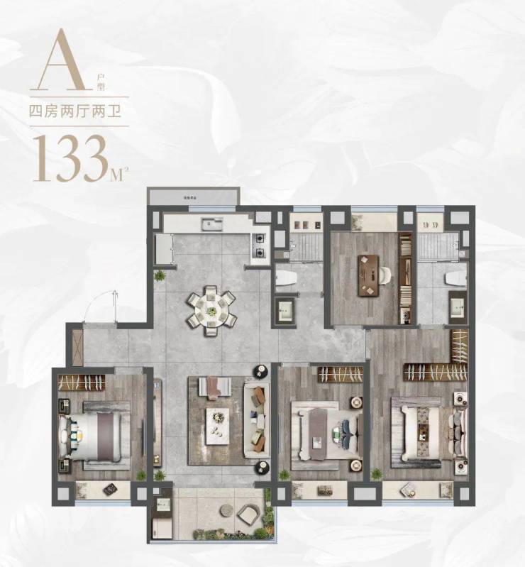 这次我想重点和大家聊聊建面约133㎡4房。