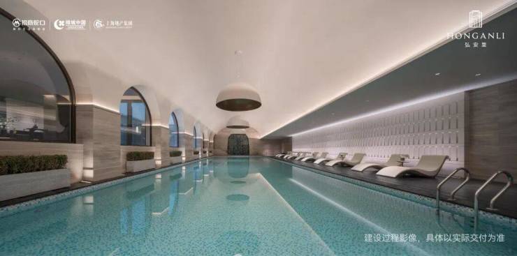 目前,泳池空间、会客空间等已经实景呈现: