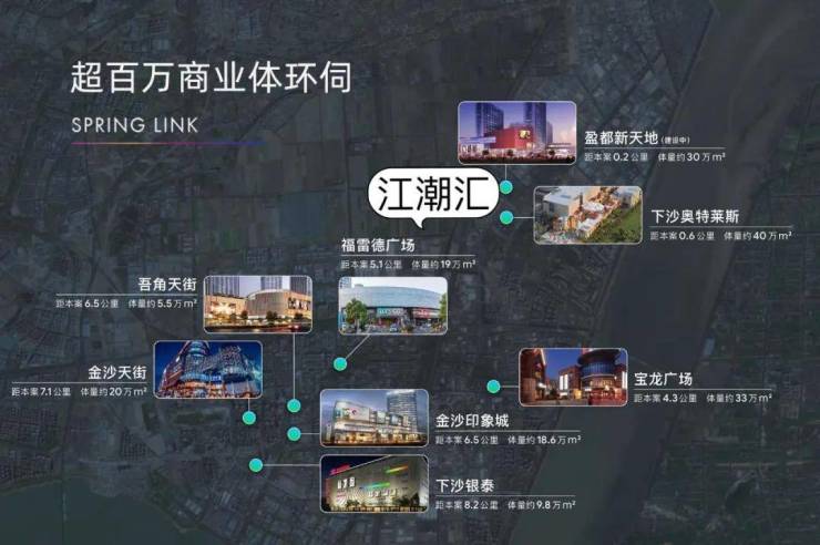 江潮汇商务中心紧邻下沙商业地标奥特莱斯,汇聚金沙天街、金沙印象城、下沙银泰城等8大城市商业体。