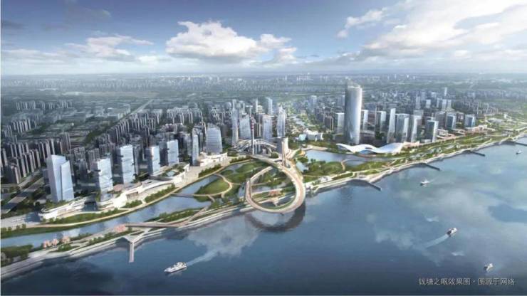 钱塘国际新城,地处杭州拥江发展与城市东拓双轴交汇处,定位对标钱江新城,占地100亩,建筑面积100万方,打造“钱塘潮都·青创之城”。