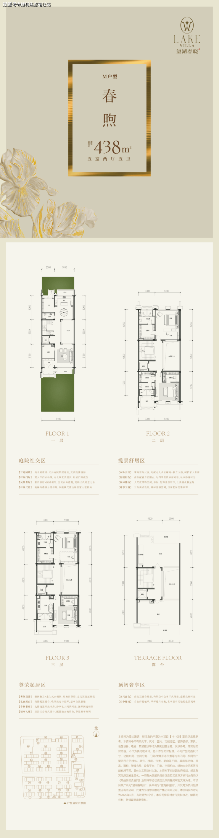 产品力,是豪宅的终极话语权 如果说稀缺性是入场券,那么产品力便是决定豪宅高度的核心密码。望湖春晓园以“法式低密墅境”为蓝本,将欧洲贵族的居住哲学与现代人居需求完美融合: - 排屋:52520元/㎡的均价,却能拥有“传世大宅”的底气 户型面积段437-483㎡,以“大面宽、短进深”的黄金比例设计,确保每一层都能享受充沛阳光与景观视野。地下双层挑高空间、私家电梯入户、独立庭院……这些通常只出现在亿元级独栋中的配置,在这里成为标配。更难得的是,项目坐拥一线湖景资源(或临近核心景观带),让“推窗见湖”不再是诗意的想象,而是日常的风景。