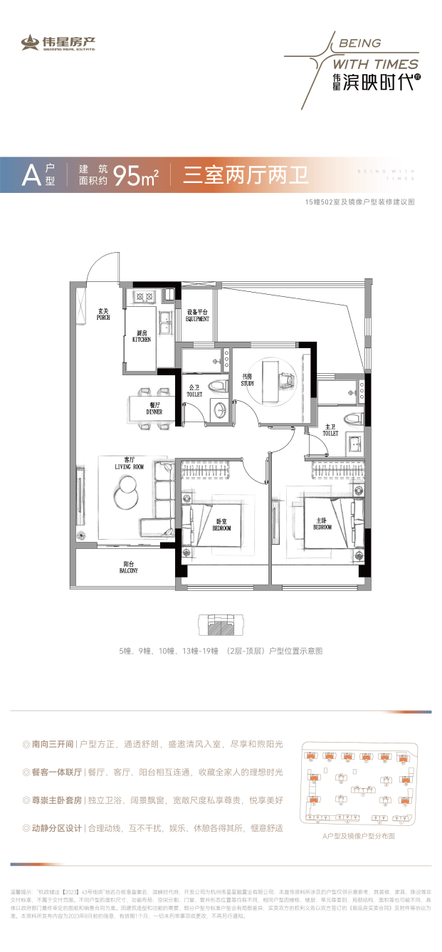在户型打造上,伟星坚信:优秀的空间设计,一定是符合家庭生活习惯和健康需求的。基于此,伟星通过大量的客户调研和样本研究,打造了建面约95-130㎡方正三居、四居产品,以恰到好处的生活空间,为理想生活提供了完美解决方案。