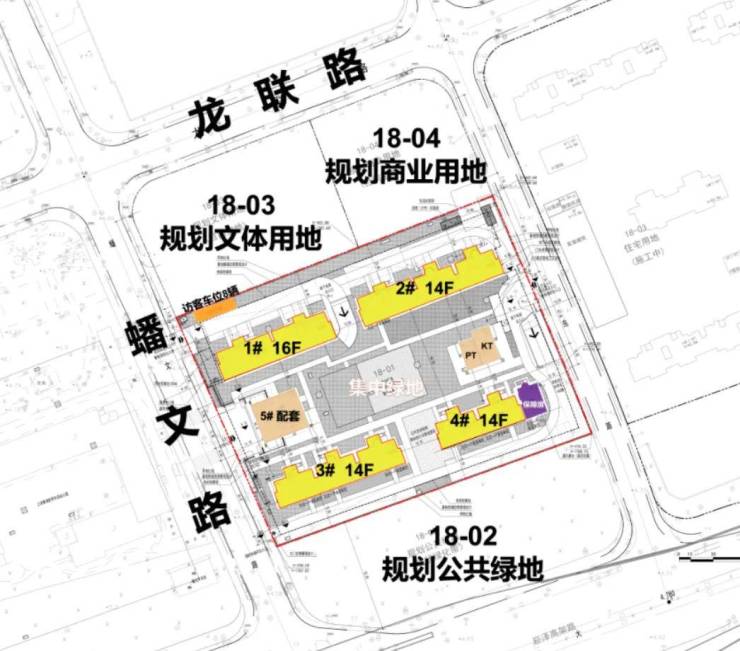 项目四至:东至蟠东路、南至崧泽大道、西至蟠文路、北至龙联路。其中18-01为普通商品房,18-03为文体用地,18-04为商业用地,项目规划住宅套数下限293套。