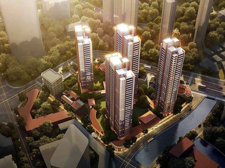 具体来看,1#总高31层,一层架空;2#总高31层,一层架空;4#总高32层,一层架空;3-1#总高24层,一层架空;6为风貌建筑,总高3层,含商业和住宅。在景观设计方面,小区内规划了景观架构、风雨连廊以及下沉式庭院。