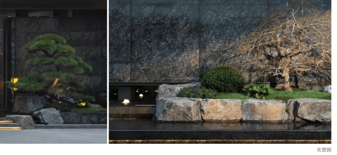 在这里,每一棵树,都成了时光的标本,搭配中国黑荒料景石、安哥拉黑奢石花钵及手工锻造金属格栅屏风,粗犷与细腻在此碰撞,流淌出温润质感,每一处景,都藏着萧山人骨子里的江南。