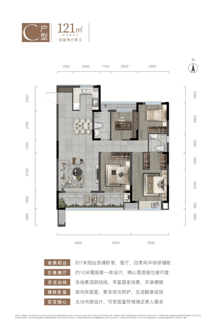 建面约89m²全能大三房,主次卧空间充沛,主卧套房式设计、三开间朝南向、双卫设计,空间多得;建筑面积约105㎡大三房全明户型,双卧朝南、拥约7米南向景观阳台、餐客一体横向约6米宽幅采光。更高的得房率,安放生活多重逸趣。