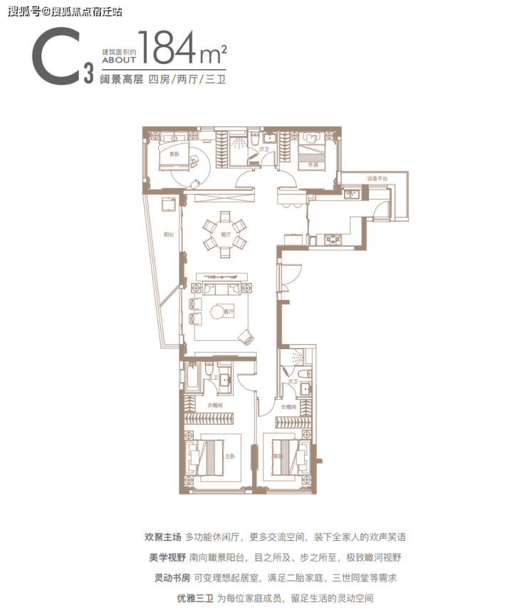 一期3#地块:规划有一幢18层高层和两幢6层多层,容积率2.33,产品包括建筑面积约108㎡3房2厅2卫,约136㎡4房2厅2卫。