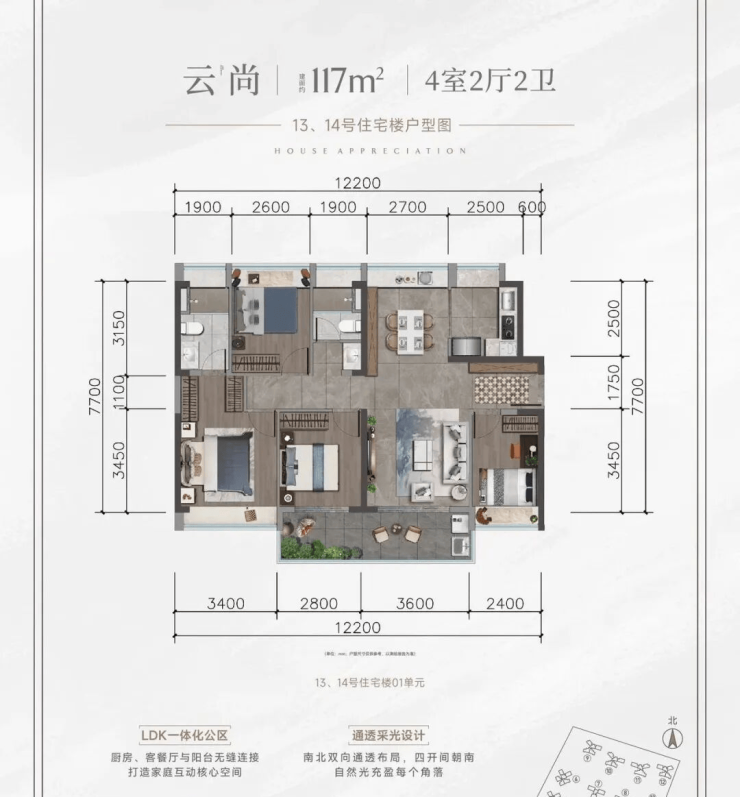 高实用率:户型方正,南北通透,部分户型做到“N+1”灵活空间(如书房可变卧室)。