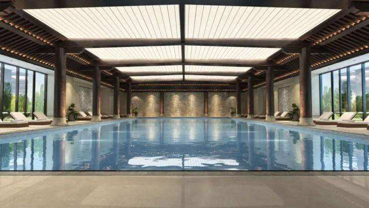 约3500㎡的中央景观区,融汇山池、六角亭、戏台、石舫,实现一步异景的院落诗意居境。