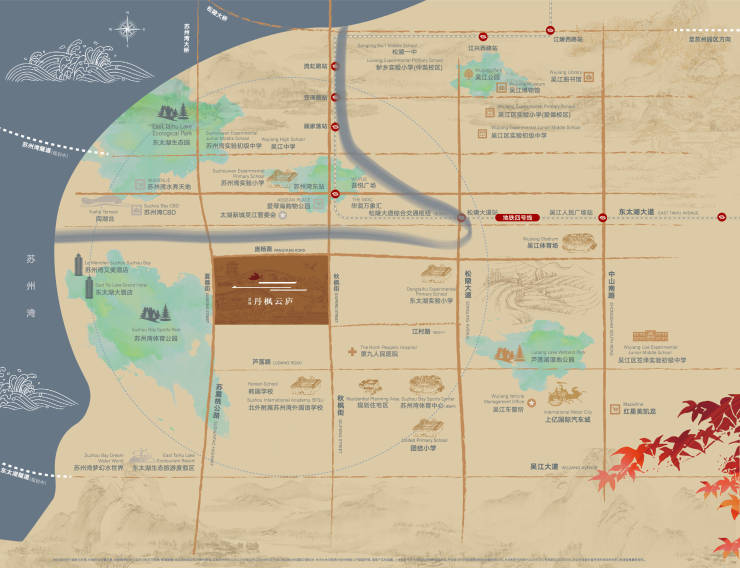 汲取宋式风骨与精髓,融合宋风院墅、奢阔大平层居住业态,择址吴江太湖新城,以约17万方宋风藏品,创新全龄生命健康体系,敬呈苏州。
