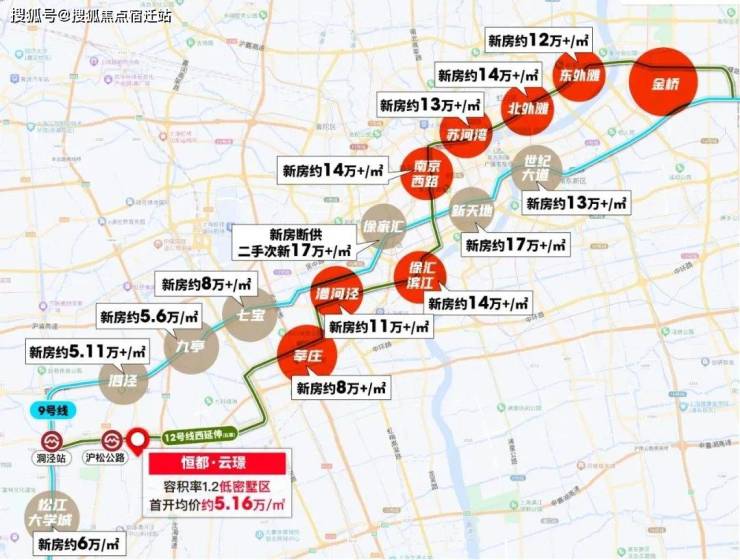从全市格局来看,12号线可谓是上海的黄金线路,漕河泾、徐汇滨江、南京路、苏河湾、北外滩、东外滩均是上海寸土寸金的CBD,价格早已超过10万大关。而与项目相隔4站的莘庄(七莘路站)目前已经超过8万/㎡,相比之下容积率1.2的恒都·云璟完全能成为12号线沿线高精尖人群的改善置业目的地!聚焦西南,你会发现恒都·云璟是真的超值。