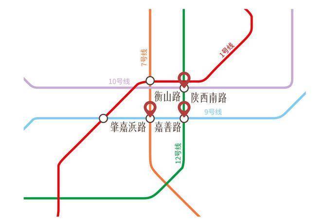 9&12号线嘉善路 7号线肇嘉浜路 1号线衡山路 10号线陕西南路
