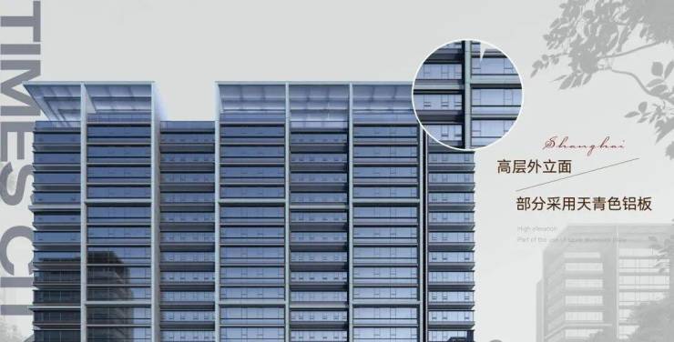 就外立面来说,时代之城就足够诚意。高层/小高层立面采用部分天青色铝板,搭配大面玻璃开窗(LOW-E玻璃)。这是只有豪宅才拥有的配置。