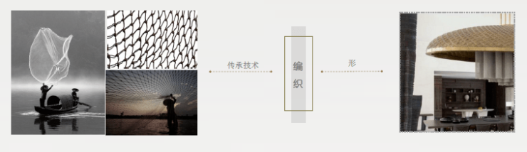 宏观布局上,我们设置了丰富的水景、蜿蜒的栈道。微观小景中布置了藤编织艺、瓦片屋檐软装,让传统与摩登对撞贯穿其中。
