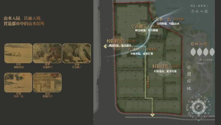 > 江脉入园:引南门江水入园,江园共生藏风纳水