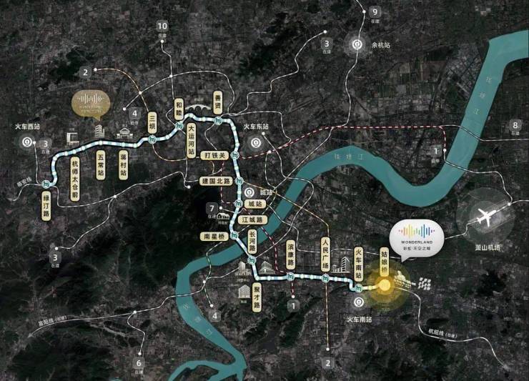同时,从姑娘桥站出发,地铁2站就能到“杭州南站”,南站新城的规划清晰可见,彩虹天空之城明显在“南站新城”的辐射范围内。