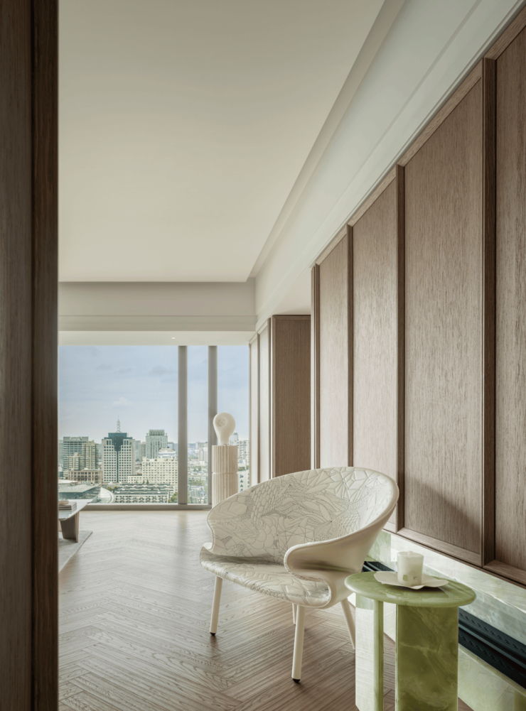 讲究「心随自然」,厚实温暖的木质和柔软肌理交织,在密与疏的对比中展现优雅的生活氛围。