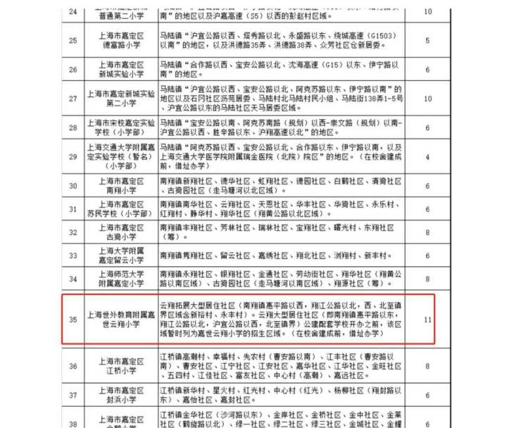 其中,世外云翔小学已经开始招生,据嘉定教育官网公示,招生范围如下: