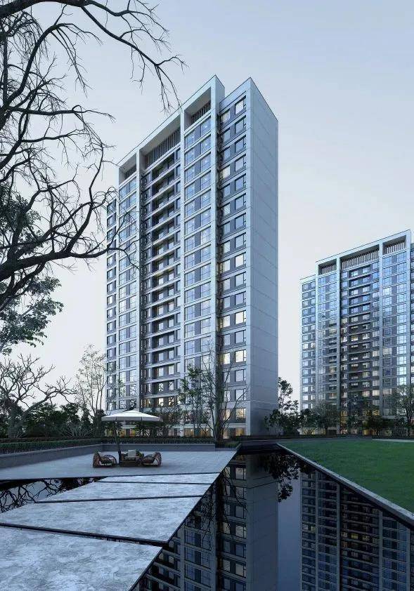 小区以现代极简主义美学理念,以首二层基座主体框架选用天然石材、局部铝板造型、大窗墙比等匠心材质,打造挺拔豪宅立面造型。