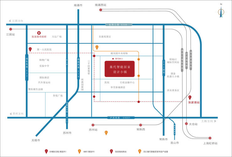 市域任何一个地方20分钟内可驶入高速路网,快速通达苏锡常 、南通等城市