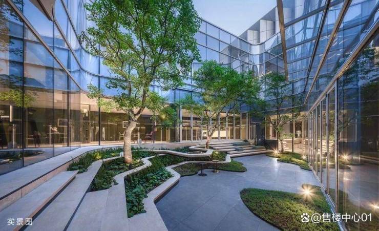 7幢大面积铝板玻璃的大楼,有了围合式园区的体验感。整盘没有大小户型穿插,全部约335㎡以上。