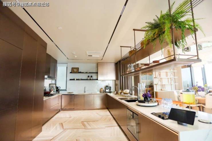 宴会厅的宽敞与气派,足以容纳一张大圆桌,长约5.5米的超级岛台更是整个空间的点睛之笔,它不仅是烹饪中心,更是构筑了一个极具吸引力的社交场。